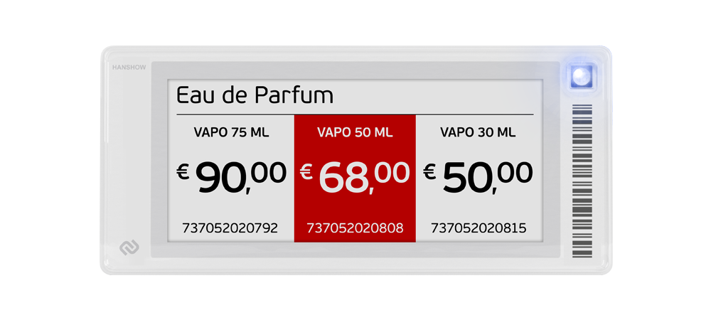 Un nuovo concetto di etichette elettroniche che rende lo scaffale uno strumento di vendita vero e proprio. Aumenta la leggibilità dei prezzi e la visibilità delle promozioni.