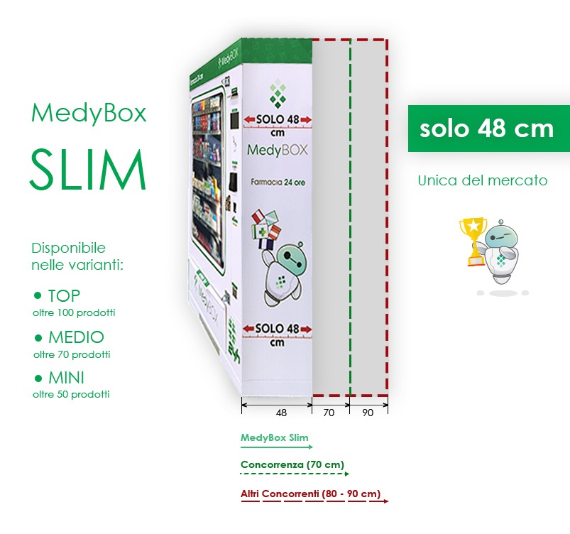 MedyBox dispone di un sistema brevettato di gestione dei ripiani: ottimizzazione degli spazi e miglioramento nella quantità e qualità dell'esposizione dei prodotti.